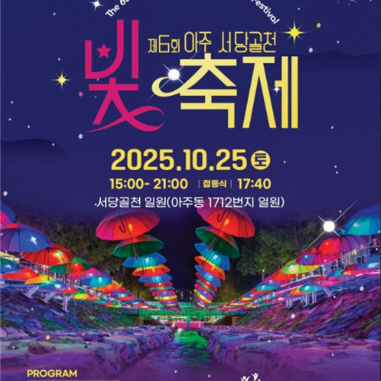 거제 아주동 서당골천을 따라 다양한 조명과 포토존이 설치되는 야간 빛축제로, 가족·연인과 함께 산책하며 아름다운 불빛을 즐길 수 있는 도심 속 힐링형 축제이다. 지역 주민들이 직접 참여해 만든 따뜻한 분위기의 축제로,